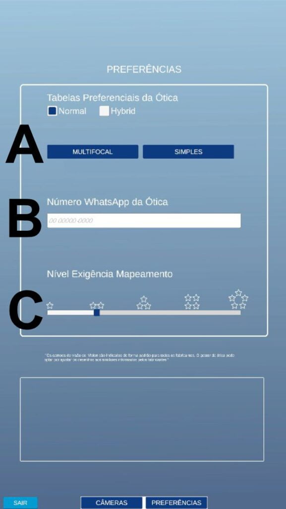 IMPORTANTE: Os desenhos representativos de cada lente são pré-configurados, podendo o cliente modifica-lo conforme entendimento técnico.