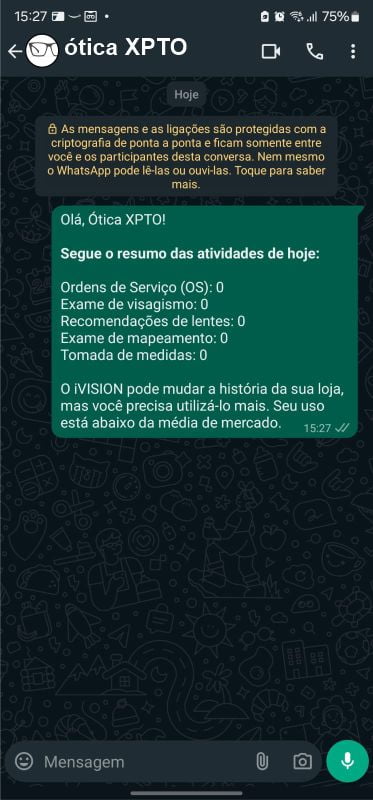 Você pode acompanhar como sua equipe está usando o iVISION direto pelo seu celular. Receba relatórios diários dos atendimentos feitos pelo iVISION na sua ótica!