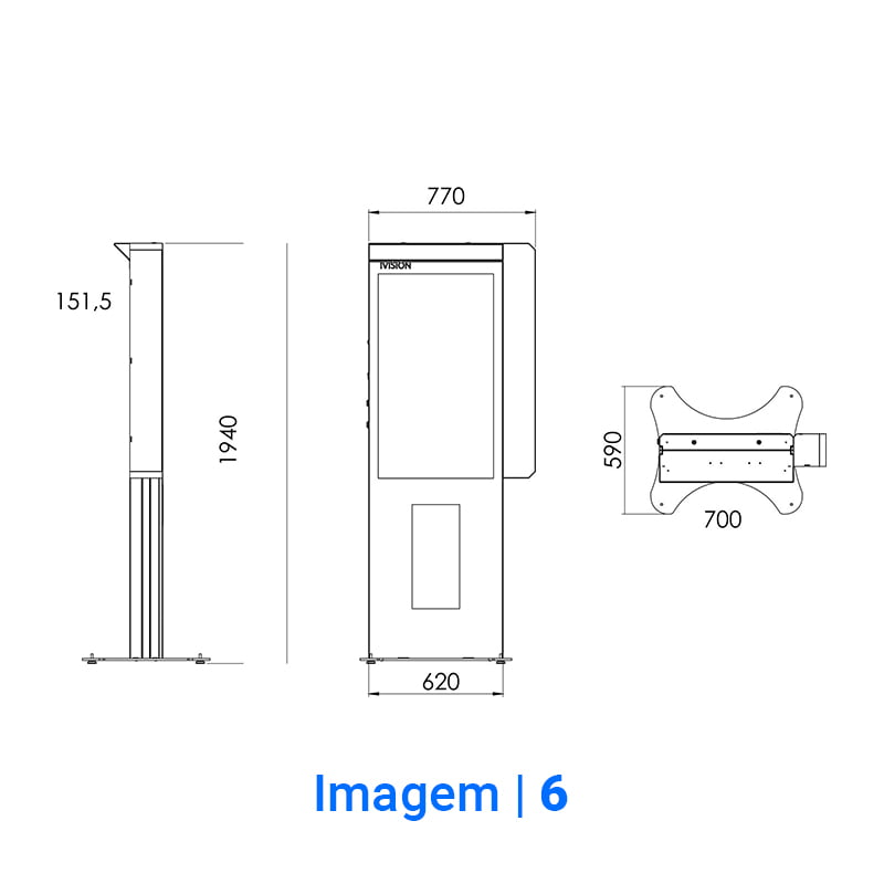 Acomode seu equipamento IVISION em um local adequado e evite movimentá-lo com frequência. Abaixo as medidas: