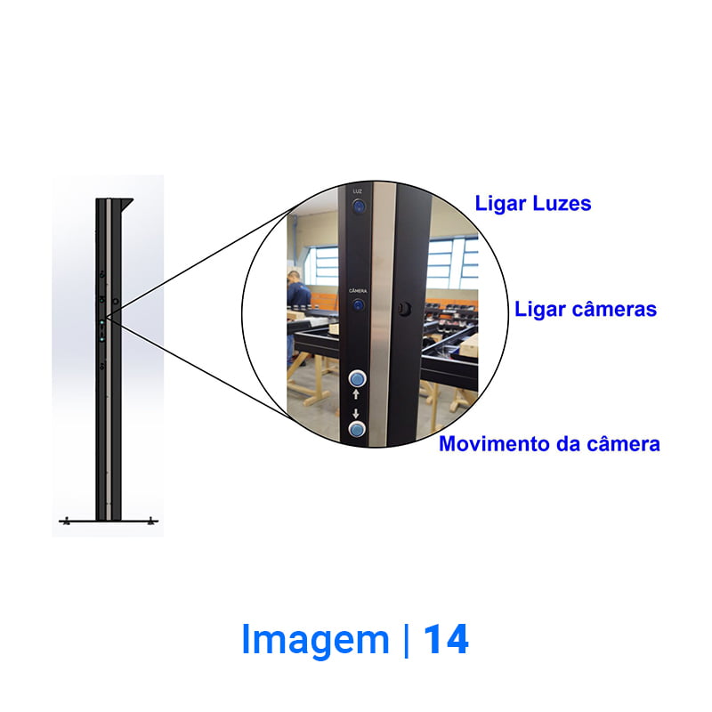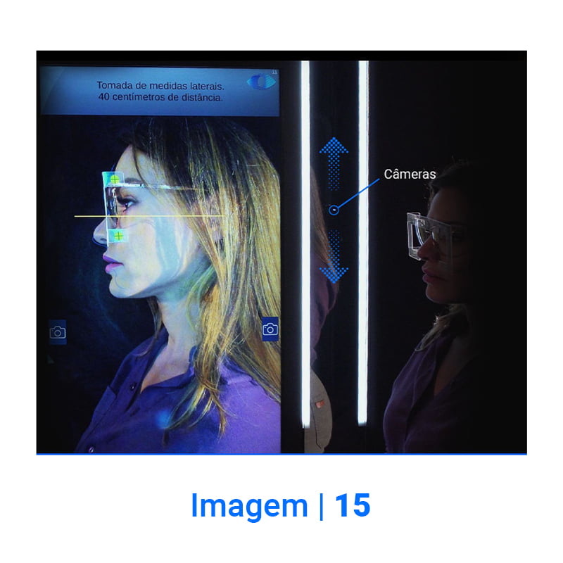 No Visagismo e Medidas Digitais, o cliente deve ser posicionado em frente ao módulo de medidas, acoplado na lateral da torre. (imagem 13)