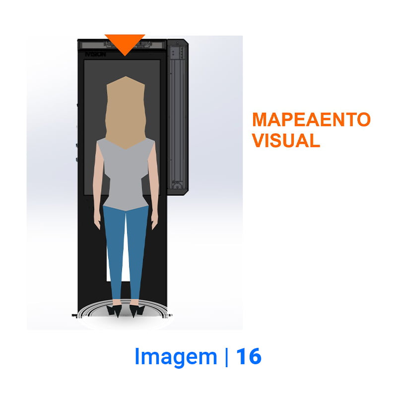 Para fazer o Mapeamento Visual, o cliente deve se posicionar na frente da tela, para que as câmeras superiores captem seus movimentos oculares. (imagem 16)