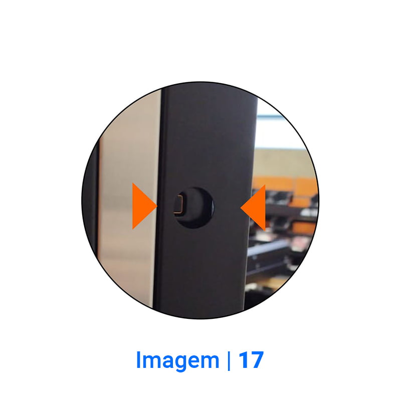 Caso a tela não reconheça a fonte de dados automaticamente, retire a tampa de borracha na lateral e faça o ajuste manual. (imagem 17)